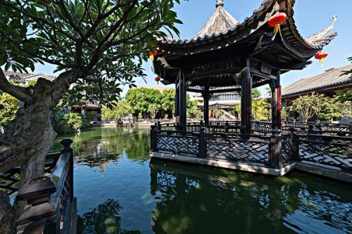 余荫山房的布局十分巧妙,园中亭台楼阁、堂殿轩榭、桥廊堤栏、山山水水尽纳于方圆三百步之中,充分反映了天人合一的文化特色,表现一种人与自然和谐统一的宇宙观。余荫山房深柳堂的檀香木雕屏上刻有晚清三大才子梁山舟、张船山、翁方纲等人的诗句和乾隆大学士刘墉的书法手迹,园内还有清代名士陈允恭所书的对联。